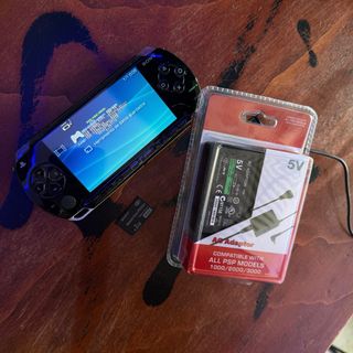 PSP modello 2004. Funziona tutto bene, batteria, UMD, pulsanti, suono... Include caricatore compatibile e una scheda SD da 64 GB con giochi all'interno. In regalo UMD del gioco Namco Museum Battle Collection. Lo schermo presenta lievi graffi dovuti all'uso, ma non è grave.
