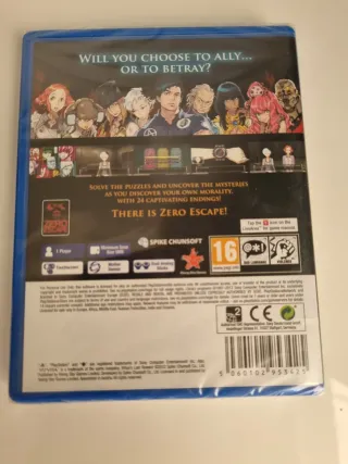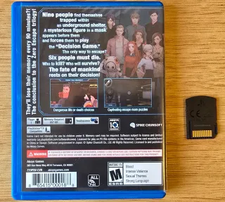 Gioco Virtue's Last Reward per PlayStation Vita. Classificazione PEGI 16. Include copertina e manuale in spagnolo.