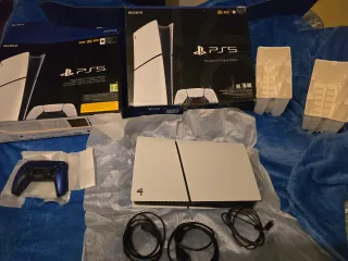 PS5 Slim da 1TB. Controller DualSense color viola. Stato impeccabile, come nuova. Usato solo 5 o 6 volte. Include la scatola originale e tutti gli accessori/cavi. Prezzo non negoziabile. Vieni a vederla, portala via e goditi la vita!