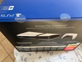 Console PlayStation 5 con lettore disco. - Design moderno e iconico. - Finitura bianca elegante. - Completo di scatolo originale, cavi e joypad come da confezione.