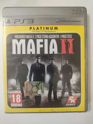 Videogioco Mafia II in edizione Platinum per PlayStation 3. - Include 3 pack storia aggiuntivi. - Include 4 pack stile. - Etichetta PEGI 18. - Completo di custodia e libretto