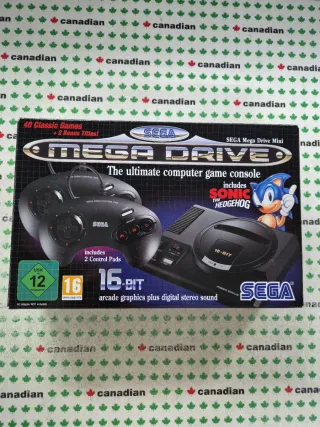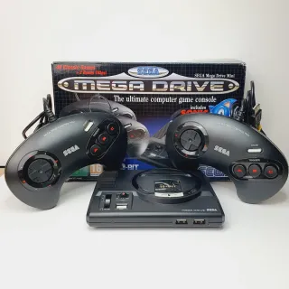 Console Sega Mega Drive Mini, un'edizione speciale che celebra i classici. - Include 2 controller Mega Drive Control Pad. - Console in color nero. - Supporta giochi a 16-bit.