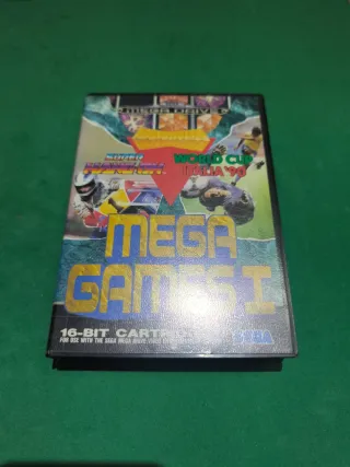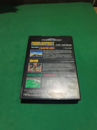 Cartuccia per Mega Drive con il gioco Mega Games I. Include i giochi Super Hang-On e World Cup Italia '90. Cartuccia a 16 bit.