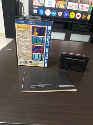 Gioco di Pocahontas per Sega Mega Drive, include scatola, cartuccia e manuale di istruzioni. Scatola originale con grafica di Pocahontas. Cartuccia del gioco Pocahontas. Manuale di istruzioni originale.
