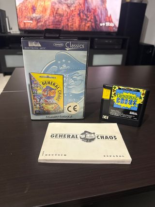 Videogioco General Chaos per Mega Drive. - Scatola originale. - Cartuccia. - Manuale in tedesco e spagnolo.