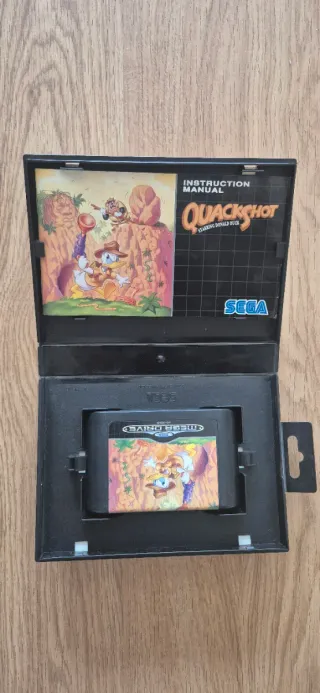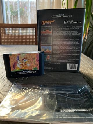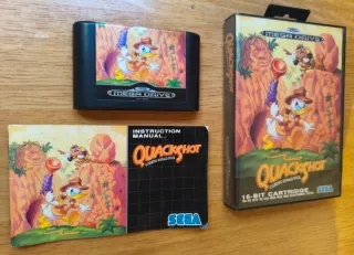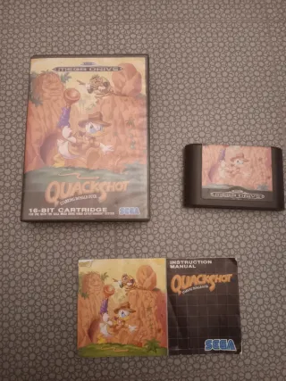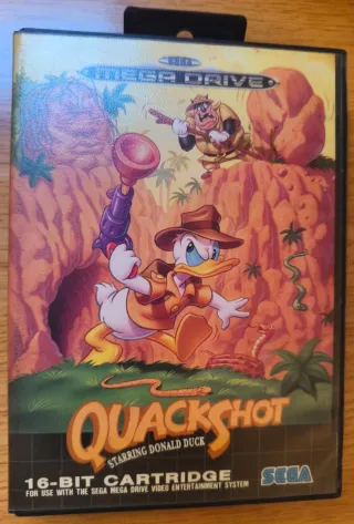 Videogioco Quackshot per Sega Mega Drive. Cartuccia da 16 bit. Include il manuale di istruzioni. Il cartuccia ha un leggero sfondo sulla etichetta.