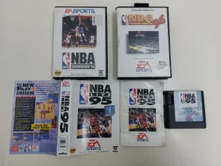 Lotto di 3 videogiochi per Sega MegaDrive - NBA Live 96, scatola, cartuccia e manuale - NBA Showdown 94, scatola e cartuccia, manuale mancante. - NBA Live 95, copertina, cartuccia e manuale. Scatola mancante. Le scatole hanno dei difetti e delle rotture ma comunque si chiudono (vedi foto). Alla cartuccia di NBA Live 95 manca la.piccola placca di plastica gialla nella parte alta sul lato sinistro (vedi foto) ma comunque risulta chiusa, si inserisce normalmente e funziona. Il manuale di NBA Live 95 è rovinato, presenta dei segni di usura e segni di evidenziatore:.comuqnue utilizzabile (vedi foto).