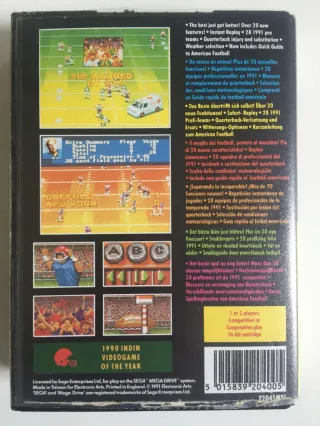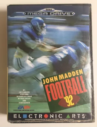 John Madden Football '92, gioco di football americano per Sega Mega Drive Edizione PAL europea. Cartuccia testata e funzionante su .ega Drive PAL. Piccolo segno di usura della cover nella parte bassa (vedi foto). Ottime condizioni della scatola, cartuccia e manuale di istruzioni. #NFL #madden #megadrive #sega #Football
