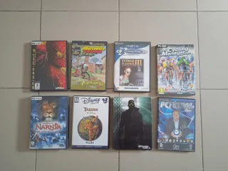 Videogiochi PC a 5€ ciascuno, tutti completi con i manuali tranne Splinter Cell e Le Cronache di Narnia, a cui manca il manuale. Splinter Cell ha 3 CD e Narnia 4 CD.