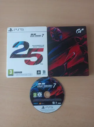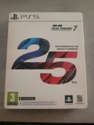 Edizione speciale del gioco Gran Turismo 7 per PS5, celebrando il suo 25° anniversario. Include la confezione del gioco e il disco. Edizione 25° Anniversario. Per PlayStation 5. Spedizione disponibile. Altri giochi nel mio profilo migliorati gratis su PS5.