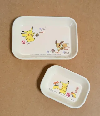 Set di due vassoi con design Pokémon. Include Pikachu ed Eevee. - Vassoio grande con Pikachu ed Eevee (151x106x23mm) - Vassoio piccolo con Pikachu (105x75x23mm) - Prodotto ufficiale del Pokémon Center Giappone - Perfetto per decorare, contenere gioielli, monete o piccoli oggetti. *Il set costa 21€ *Se acquistati separatamente, il grande costa 14€ e il piccolo 10€