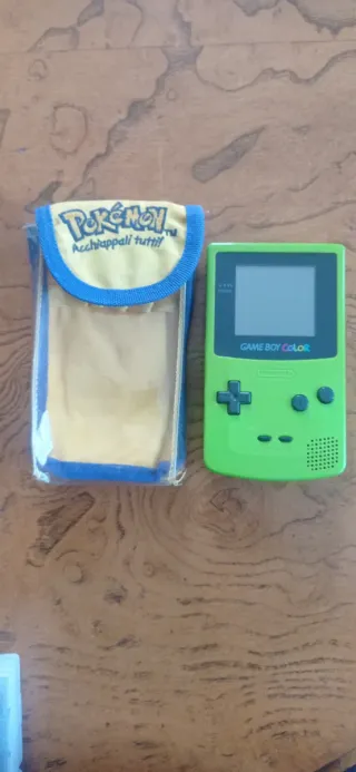 Vendo Gameboy Color verde lime con custodia Pokémon Gameboy funzionante ed in condizioni ottimali Con segni di usura sullo schermo in plastica Evidenzio tasto b lievemente meno reattivo di tasto a Con coprì batteria posteriore originale, di qualche millimetro piegato, rende la chiusura più dura del normale Accetto proposte 🙂