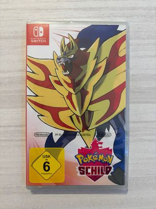 Gioco Pokémon Scudo per Nintendo Switch. Gioco Pokémon Scudo per Nintendo Switch, nuovo e ancora sigillato. Versione multilingue, originale Nintendo. Perfetto per collezione o per giocare. Spedizione disponibile tramite Wallapop o ritiro a mano. Prezzo trattabile. - Copertina con artwork di Zacian. - Classificazione USK ab 6. - Lingua - multilingue