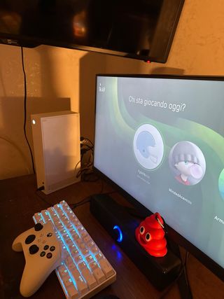 Vendo postazione gaming completa, ideale per gli appassionati di videogiochi. - Console Xbox Series S bianca - Controller wireless bianco - Tastiera gaming retroilluminata DIERYA - Mouse gaming Logitech nero - Cassa audio nera