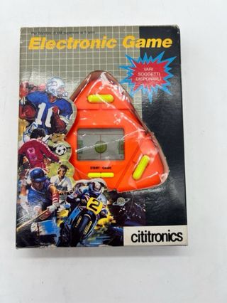 Lotto di due giochi elettronici Cititronics. Contenuto del lotto 1. Super Race - Electronic Game • Display LCD • Controller a manopole In scatola originale 2. Electronic Game Sport (arancione) • LCD a forma triangolare • Tema sportivo / calcio • In scatola originale Perfetti per collezionisti di handheld LCD vintage e appassionati di giochi elettronici anni '80/'90.
