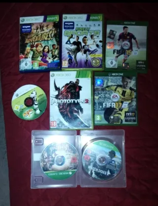 Lotto misto di videogiochi per Xbox 360 e Xbox One. - Kinect Adventures - Kinect Sports - Prototype 2 - FIFA 15 - FIFA 17 - Watch Dogs 2 - Dante's inferno - Madagascar 2