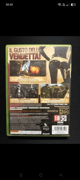 The Saboteur - Xbox 360 | Un Gioiello Open World Unico! Vendo lo splendido The Saboteur, un action-adventure open world ambientato nella Parigi della Seconda Guerra Mondiale. Un titolo dallo stile inconfondibile e dall'atmosfera incredibile! Gameplay Variato: Un mix perfetto tra il parkour alla Assassin's Creed, le sparatorie e la guida di auto d'epoca alla GTA/Mafia. 📦 Condizioni del prodotto: Piattaforma: Xbox 360 Disco: in ottime condizioni Custodia: originale ed integra Manuale: completo di manuale Lingua: gioco in lingua italiana ✅ Spedizione rapida e imballaggio accurato con pluriball per proteggere la custodia.