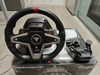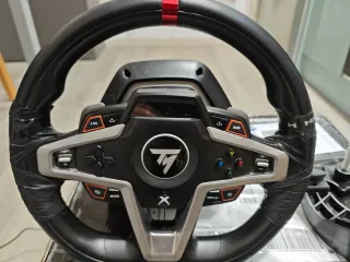 Volante di simulazione per Xbox della marca Thrustmaster. Include pedali e struttura. Il volante ha solo un mese di utilizzo e la stessa cosa vale per la struttura. Si accettano offerte. (Volante valutato a 300€ nuovo e supporto 79€)