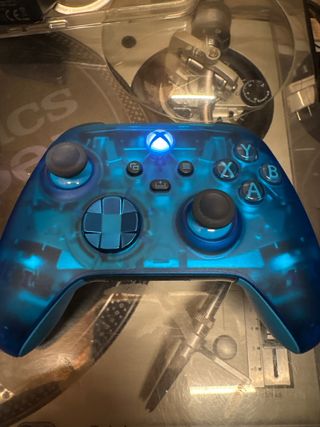 Controller Xbox Edizione Limitata Sky Chiper. Funziona perfettamente senza drift. Design traslucido blu. Pulsanti frontali con lettere incise. Include la scatola originale.