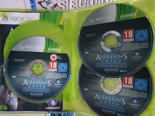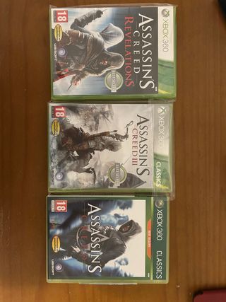 Tre giochi di Assassin's Creed per Xbox 360 in perfette condizioni. I giochi inclusi sono: Assassin's Creed II, Assassin's Creed: Revelations e Assassin's Creed: Brotherhood. - Sono nelle loro confezioni originali. - Ideali per collezionisti o amanti della saga.