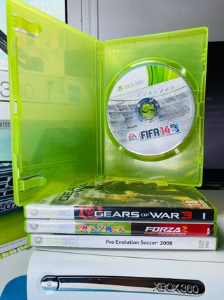 Console Xbox 360 con due controller per goderti i tuoi giochi. - Include console. - Due controller (uno bianco con cavo e uno nero senza fili). - Cavo di alimentazione. Può essere venduto insieme al pack e al gioco e il prezzo può essere negoziato