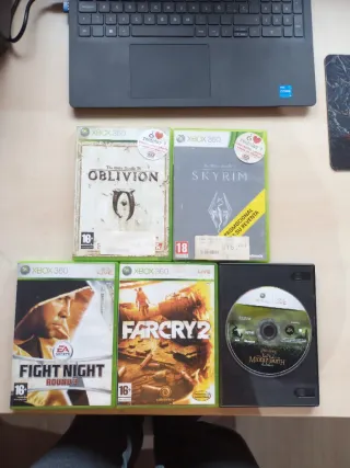 Lote di 5 giochi per Xbox 360: -Far Cry 2 (completo) -Fight Night Round 3 (completo) -Lord of the Rings The Battle for Middle-Earth (solo disco) -The Elder Scrolls IV - Oblivion (scatola e disco) -The Elder Scrolls V - Skyrim (completo) VENDO SOLO IN LOTTO. PREZZO 19,99€ Spedizione o ritiro in loco.