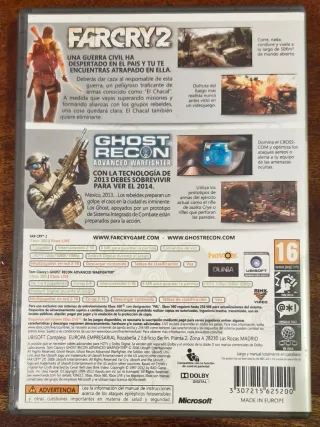 Pacco doppio di giochi per Xbox 360 che include Far Cry 2 e Tom Clancy's Ghost Recon Advanced Warfighter. - Giochi d'azione e sparatorie. - Edizione Classics e Best Seller. - Classificazione PEGI 16. - Include versione completamente in spagnolo.