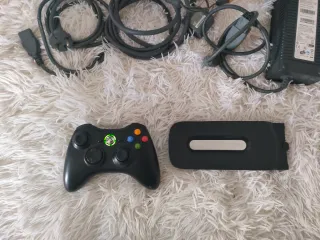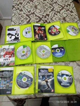 Consola Xbox 360 Slim in colore nero, insieme a due controller e giochi. 🔹 Include: • Consola Xbox 360 Slim • Cavo di alimentazione • 2 controller originali Xbox 360 (bianco e rosa) • Set di giochi originali: • FIFA 11 • FIFA 12 • PES 2012 • PES 2013 • Battlefield 3 • Gears of War • Far Cry Instincts Predator • Watchmen: La fine è vicina Parte 1 e 2 • Homefront • Kinect Adventures • Soul Calibur IV 📀 Tutti i giochi sono originali nella loro confezione. 🔧 Stato: • Consola: buone condizioni generali, con lievi segni normali di utilizzo. • Controller: funzionano correttamente. • Giochi: dischi in buone condizioni. 📦 Ideale per collezionisti.