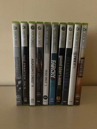 Raccolta di videogiochi per Xbox 360 e Wii. Include titoli di azione, avventura, corse e altro. - Fallout 3 - Final Fantasy XIII - Halo Reach - Resident Evil 6 - Battlefield 3 Limited Edition - Saints Row - Forza Motorsport 3 - Ghost Recon - Medal of Honor Airborne - Lost Planet 2 - Tom Clancy's Splinter Cell Conviction - Pure - Lego Batman - DJ Hero - Perfect Dark Zero - Far Cry 3 - Tomb Raider - Never Dead - Rise of the Tomb Raider - FIFA 13 - Forza Motorsport 3 - Sleeping Dogs - WWE 17 - Deus Ex - Resident Evil 5 - Alan Wake - Sniper 2 - Battlefield 4 - Wii Fit - Wii Fit Plus - Wii Play - Xbox One (Tom Clancy's The Division)