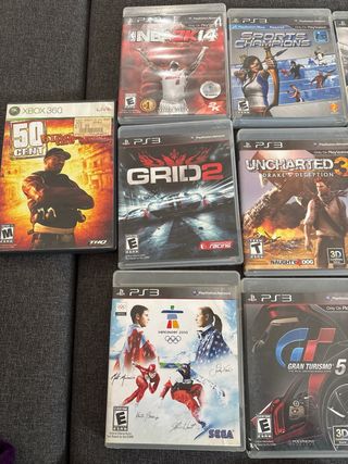 (possibile vendita in lotto o separatamente) In lotto: 130€ Pacchetto di videogiochi per PlayStation 3. - Gran Turismo 5 - UFC 2010 Undisputed - FIFA 14 - MLB 13 The Show - FIFA Soccer 12 - Uncharted 3: Drake's Deception - GRID 2 - NBA 2K14 - Tom Clancy's Rainbow Six Vegas 2 - 50 Cent: Blood on the Sand (Xbox 360)