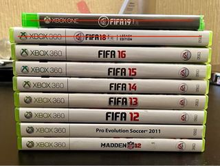 Raccolta di 9 giochi di calcio per Xbox 360. - FIFA 09 - FIFA 11 - FIFA 12 - FIFA 13 - FIFA 14 - FIFA 15 - FIFA 16 - FIFA 17 - FIFA 18 - FIFA 19 - 40€ L'intero lotto In vendita tranne FIFA 19, che vale 40 euro. Spedizione tramite wallapop