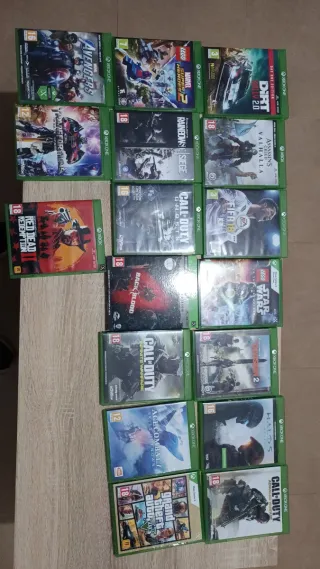 Collezione di 16 videogiochi per Xbox One. A partire da 7€ a gioco. - Red Dead Redemption II. 15€ - Marvel's Avengers. 7€ - LEGO Marvel Super Heroes 2. 7€ - Transformers: Fall of Cybertron. 7€ - Rainbow Six Siege. 7€ - Assassin's Creed Valhalla 10€ - Dirt 2.0 7€ - Call of Duty: Ghosts 7€ - FIFA 18. 5€ - Call of Duty: Black Ops - LEGO Star Wars: The Force Awakens 10€ - Call of Duty: Infinite Warfare 8€ - Halo 5: Guardians 10€ - Ace Combat 7: Skies Unknown 8€ - Grand Theft Auto V 12€ - Call of Duty: Advanced Warfare 7€