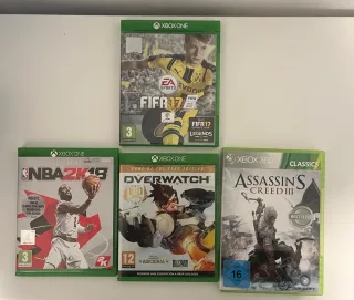 4 giochi Xbox in perfetto stato 💯💯 -Inclusi i codici ✅✅ -I giochi sono: -Nba 2k 18 -Fifa 16 -Overwatch premium edition -Assassin's Creed 3