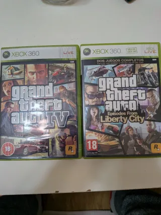 Questo pacchetto include due giochi completi di Grand Theft Auto per Xbox 360. Include guide e poster. Scatola di GTA IV in inglese. Interessa venderli insieme.