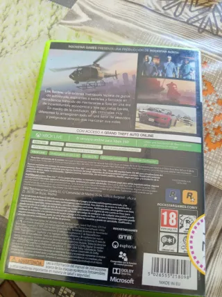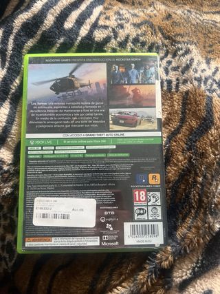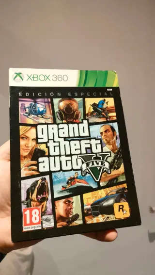 Videogioco Grand Theft Auto V per Xbox 360. - Include l'accesso a Grand Theft Auto Online. - Richiede 8 GB per giocare. - Compatibile con HDTV 720p/1080i/1080p. - Multiplayer in rete 2-16 giocatori. - Co-op 2-16 giocatori. - Testi sullo schermo in spagnolo. - Classificazione PEGI 18. Nessuna spedizione, tratta solo di persona.