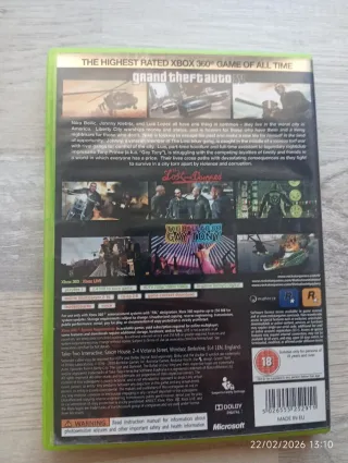 Videogioco Grand Theft Auto V per Xbox 360. Classificazione PEGI 18. Include copertina e disco.