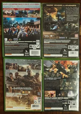 Lotto di 4 videogiochi per Xbox 360. PAL Spagna. Giochi in ottime condizioni e completi con i rispettivi manuali. - Virtual Fighter 5 - Dead Space - Gears of War 3 - Halo 3 Spedizioni tramite Wallapop.