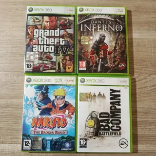 Vendo lotto di 4 videogiochi per Xbox 360 tutti completi di manuale e testati. - Grand Theft Auto IV - Dante's Inferno - Naruto: The Broken Bond - Battlefield: Bad Company