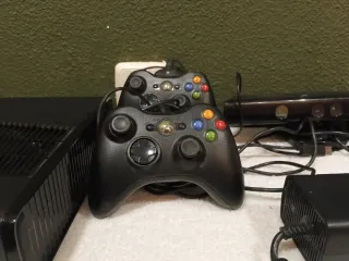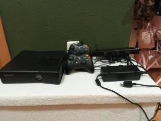 In vendita console Xbox 360 in colore nero, insieme ai suoi accessori. Include due controller. Include Kinect. Include alimentatore.