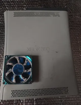 Console Xbox 360 per parti o riparazione. Include un ventilatore aggiuntivo. Si trova nella parte dove si trova il ventilatore con una crepa non si accende. - Custodia bianca. - Ventilatore blu.