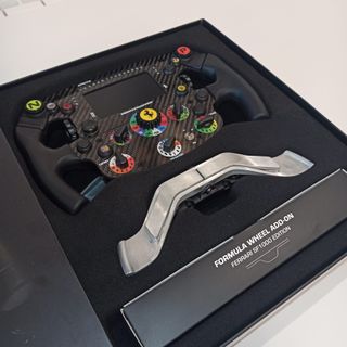 Replica ufficiale della Ferrari SF1000: volante F1 con touchscreen da 4,3", telemetria in tempo reale, push-pull magnetico in alluminio (antiusura) e paddle posteriori analogici. 100% carbonio rigido, impugnature ergonomiche per l'autentica Formula 1 in F1 24, Gran Turismo 7, Assetto Corsa. 25 pulsanti/encoder + 21 giri/bandiere LED. Base Thrustmaster a sgancio rapido (T300/TX/TS-PC). Compatibile con PC, PS5/PS4, Xbox Series/One. Diametro ideale 270 mm GT3/Formula. Modifiche precise senza errori, durata illimitata. Come nuovo, trasforma il tuo simulatore di corse in un professionista.