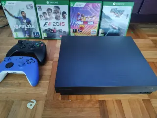 Console Xbox One X nera con 1TB di spazio di archiviazione e 781GB di memoria sul disco. Ottimo prezzo per la Xbox insieme ai controller e giochi in regalo. Include due controller: nero e blu. Giochi in regalo: FIFA 23, NBA 2K20 (No F1), NBA 2K24, Need for Speed Rivals. Cavi di alimentazione e HDMI inclusi. Funzionamento corretto al 100%.