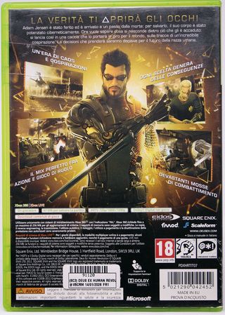 (SC3) DEUS EX HUMAN REVOLUTION SQUARE ENIX XBOX 360 GIOCO USATO ITALIANO FR1 91120 - GIOCO USATO BUONO STATO EDIZIONE ITALIANA – BOX COPERTINA MANUALE E DISCO TUTTO BUONO STATO – TESTATO