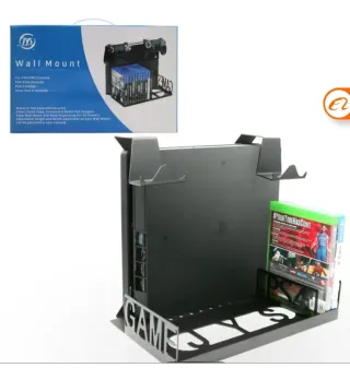 Supporto universale da parete per console PS4/PS4 PRO/PS4 Slim e Xbox One S. Organizer da scrivania per console da gioco e controller/comandi. - Design regolabile in altezza e larghezza. - Include appendini per controller. - Spazio per vari giochi.