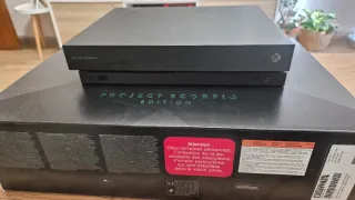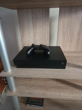 Consola Xbox One X in colore nero. Include il suo controller, la scatola e tutti gli accessori originali, in ottime condizioni