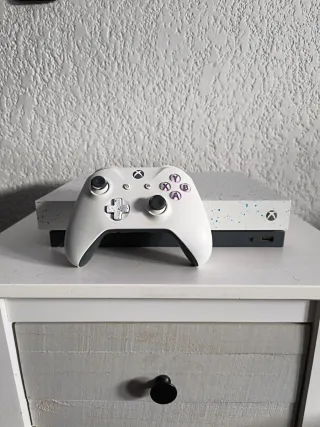 Consola Xbox One S in bianco, con un controller aggiuntivo nero. Capacità di 500 GB. Include la scatola originale della console e del controller. Il controller originale non funziona a causa di un grave problema di drift, ma viene incluso il controller Gamesir H7 che è perfetto. Motivo della vendita: acquisto di una Series X.