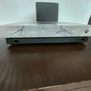 Console Xbox One X con finitura nero e oro. Include controller bianco e cavo. Capacità di 1TB. Controller wireless incluso. Cavo di connessione. Non conosco lo stato del controller poiché era usato dai bambini.