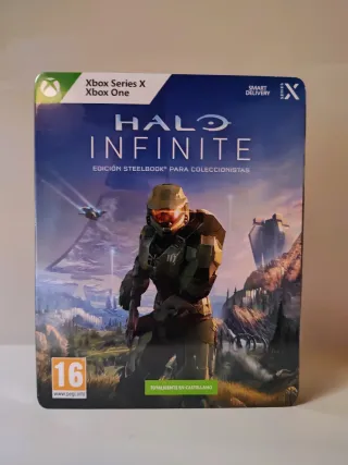 Gioco Halo Infinite Steelbook Collector's Edition per Xbox Series X e Xbox One in perfette condizioni. Include il gioco nella sua confezione metallica. - Edizione collezionista Steelbook. - Compatibile con Xbox Series X e Xbox One. - Smart Delivery. La scatola è in francese ma il gioco è in spagnolo, piccolo graffio vedi foto