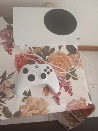 Consola Xbox Series S in bianco, con un controller, cuffie wireless Xbox, un espulsore per evitare il surriscaldamento, supporto da parete incluso. Vendo con il mio account che include tutti i Resident Evil fino al 7 e altri giochi. In perfette condizioni, con scatole e accessori. Include: controller e cuffie.