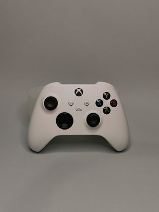 Controller wireless per Xbox Series S in colore bianco. Il joystick sinistro ha un leggero movimento verso l'alto. Il tasto in alto a sinistra è allentato ma funziona perfettamente.